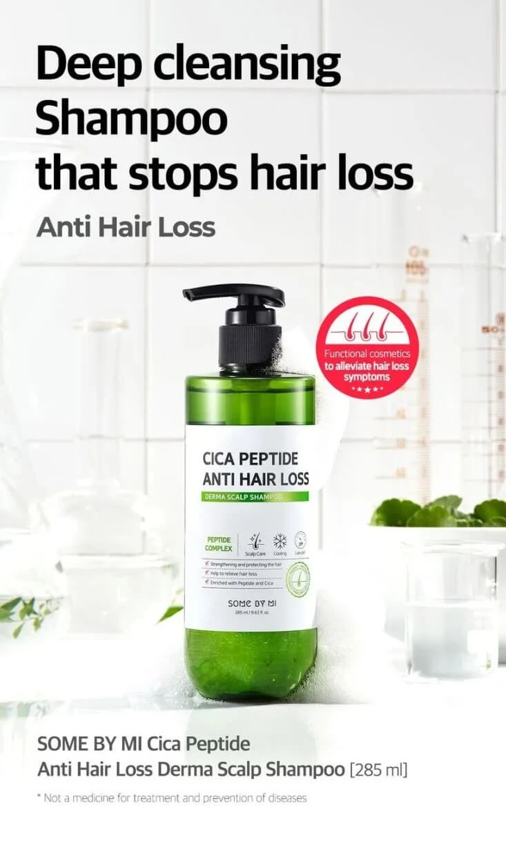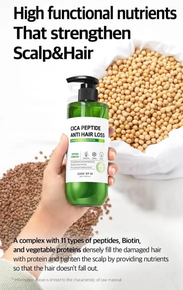 Achieve a healthy head of hair with the Cica Peptide Anti Hair Loss Derma Scalp Shampoo by SOME BY MI. This powerful Korean shampoo is formulated with 11 peptides to deeply nourish the scalp, Centella Asiatica to soothe irritations, and menthol for a refreshing and cooling touch.