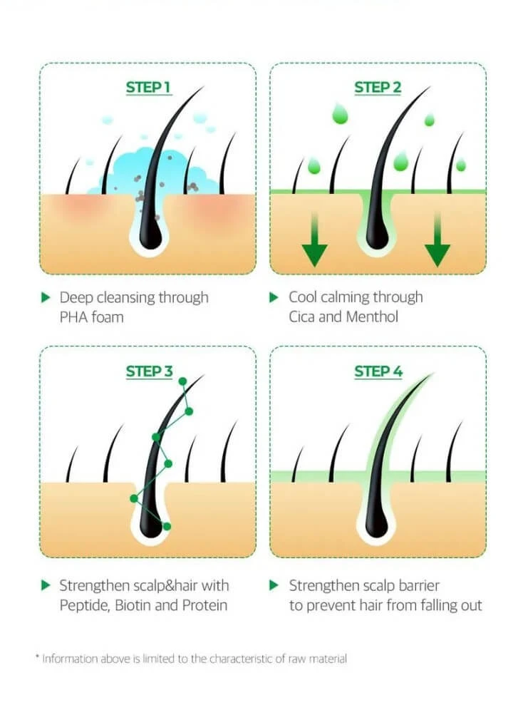 It also contains PHA (Salicylic Acid) to remove dead skin cells, impurities, and excess sebum from the scalp. Biotin and proteins from the bean, wheat, and corn work together to help achieve healthy hair growth.