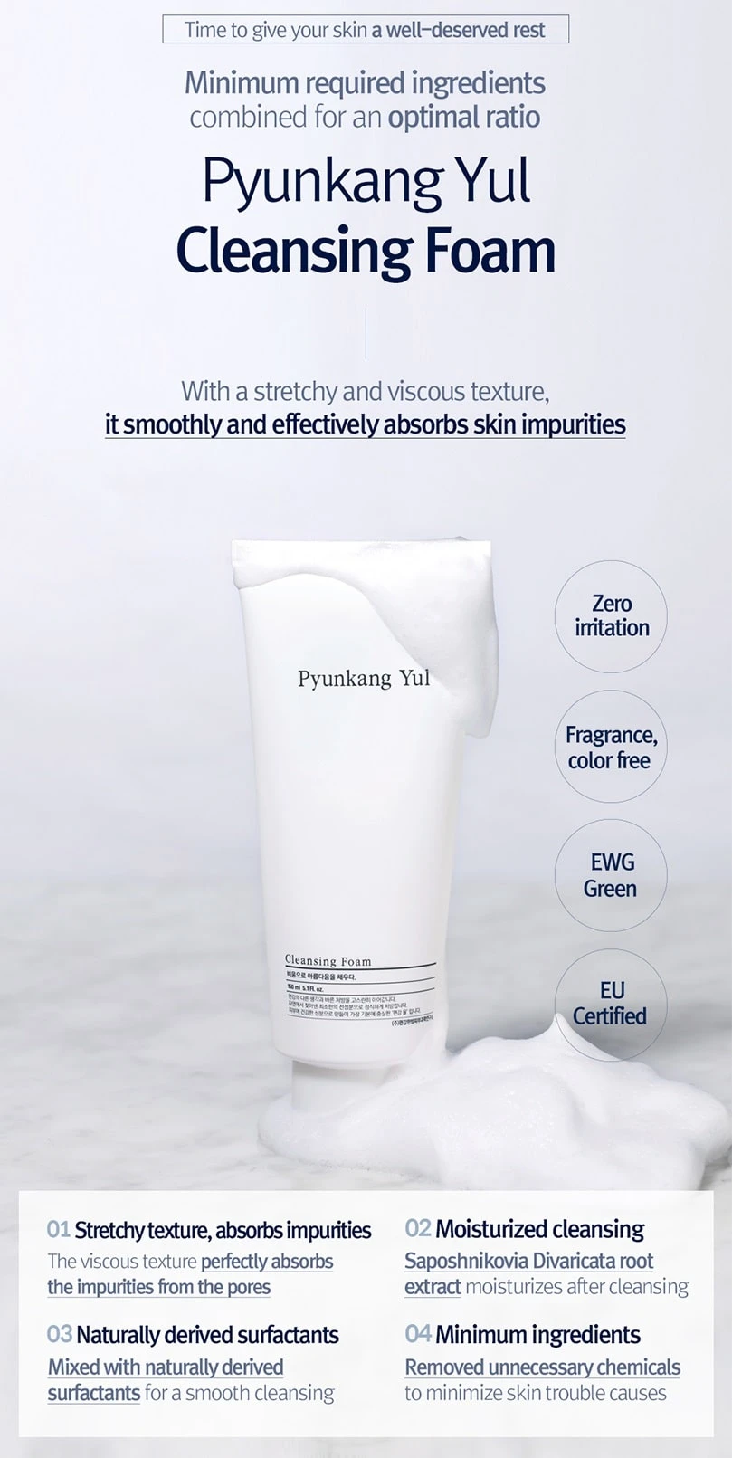 Our faces are exposed every day to many different types of irritants and dirty substances that promote unhealthy bacteria and an uncomfortable, unsightly appearance. The Pyunkang Yul Cleansing Foam provides your skin with a necessary, deep cleanse and a mild touch – perfect for those with sensitive skin.