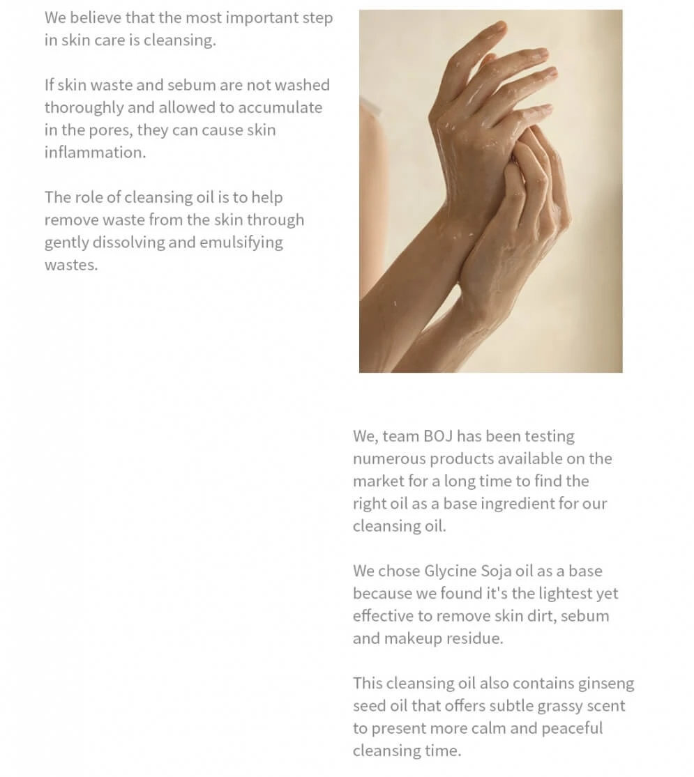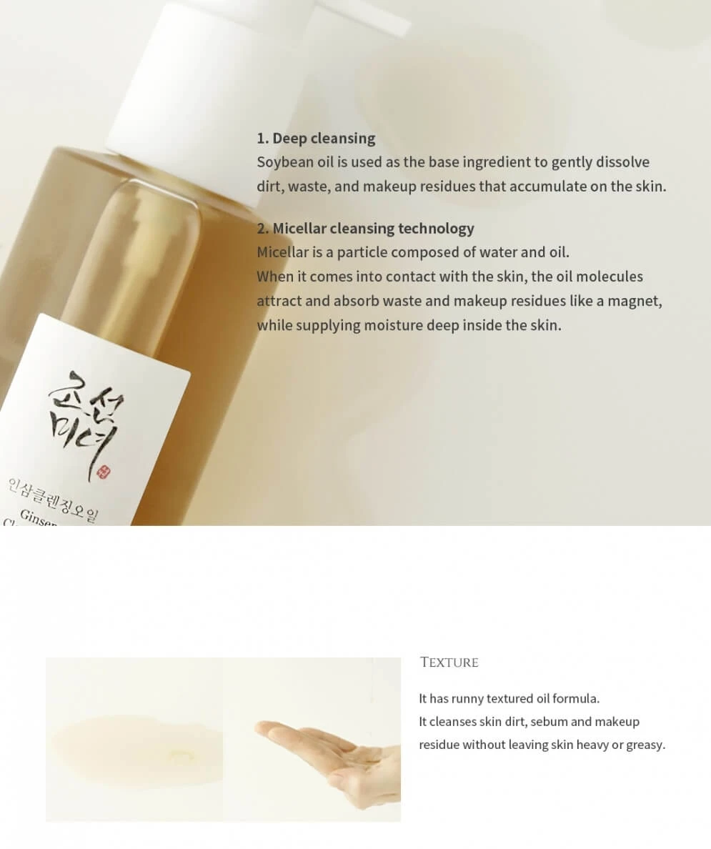 as a cleansing oil for a double cleanse routine. It is formulated with ginseng extract, known for its hydrating and nourishing properties.