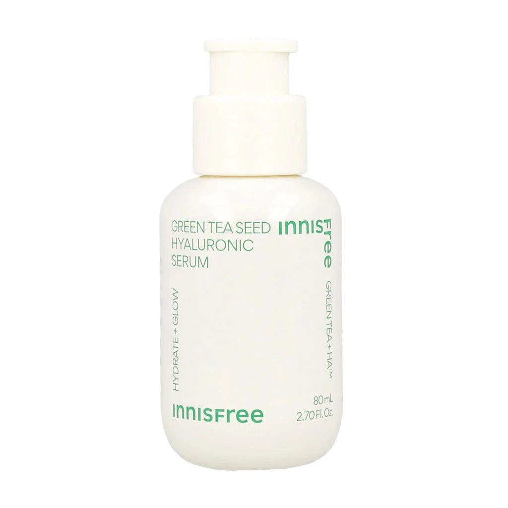 The Innisfree Green Tea Seed Hyaluronic Serum is an antioxidant-rich serum delivering a powerful ingredient combination of organic green tea water, panthenol, batain and green complex directly into your skin.