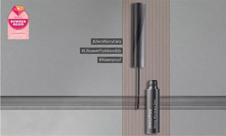 The waterproof design of the Innisfree Skinny Microcara Zero delivers a smudge-free result with phenomenal volume for a stunning outcome – the best compliment to your eye makeup. The sleek brush design furthermore makes it easy to apply the mascara, providing effortless handling. The neat, lightweight finish avoids that typical “heavy” and “clumpy” feeling often associated with popular mascaras.