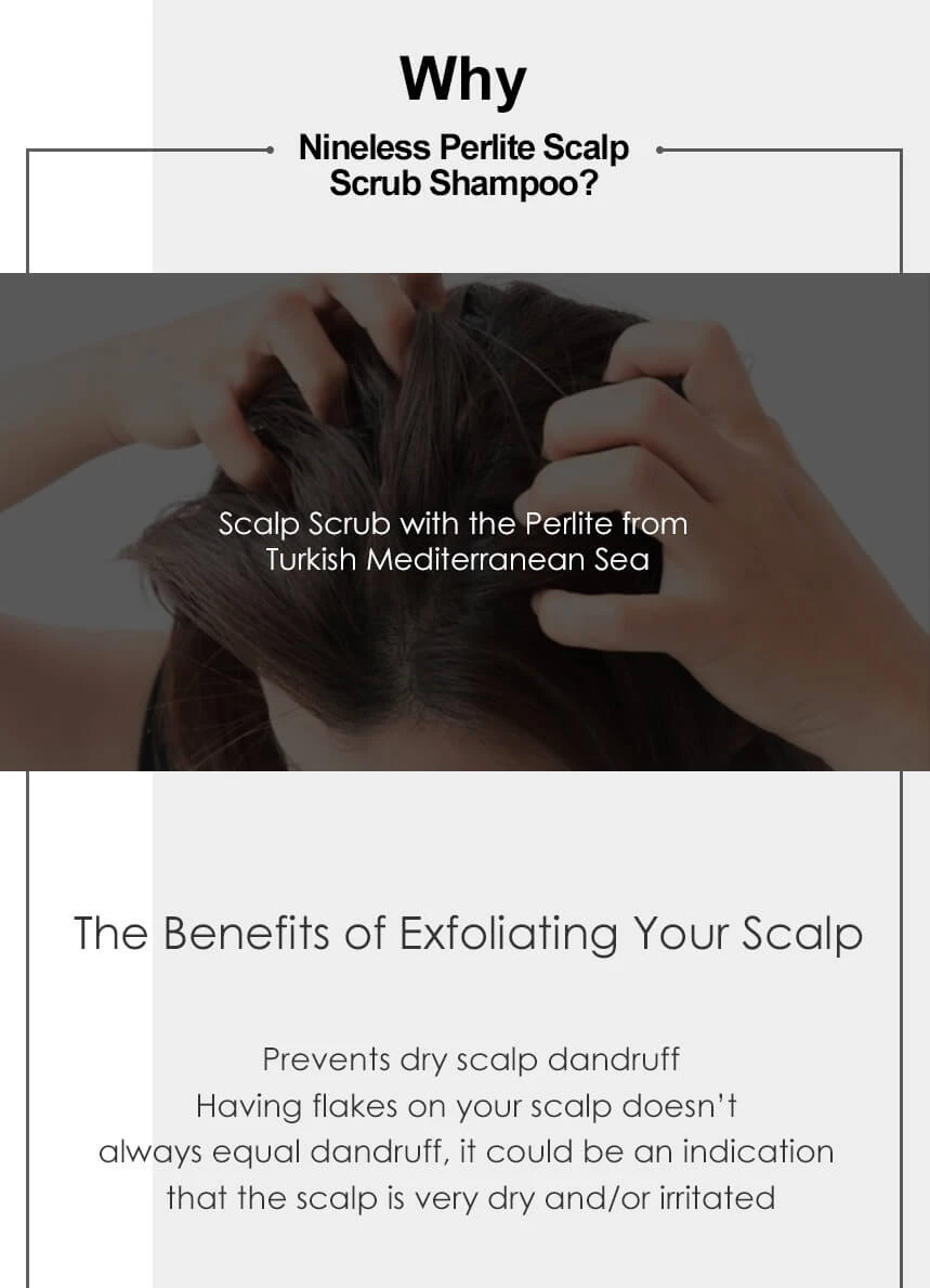 Within the NINE LESS Magic Nine Perlite Scalp Scrub Shampoo is a unique variety of natural ingredients, including Centella Asiatica extract, skullcap, green tea, and licorice root in addition to the powerful Perlite from the mediterranean sea. These fight off dead skin cells and impurities for a clean, healthy scalp. The perlite component gently and effectively exfoliates the scalp without damaging your hair’s integrity.