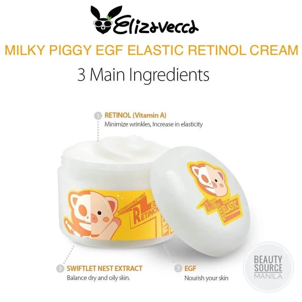 The Milky Piggy EGF Elastic Retinol Cream is a deeply hydrating and nourishing night cream formulated with pure retinol, swiftlet nest extract, and EGF to reduce wrinkles, improve skin elasticity, and even skin tone.