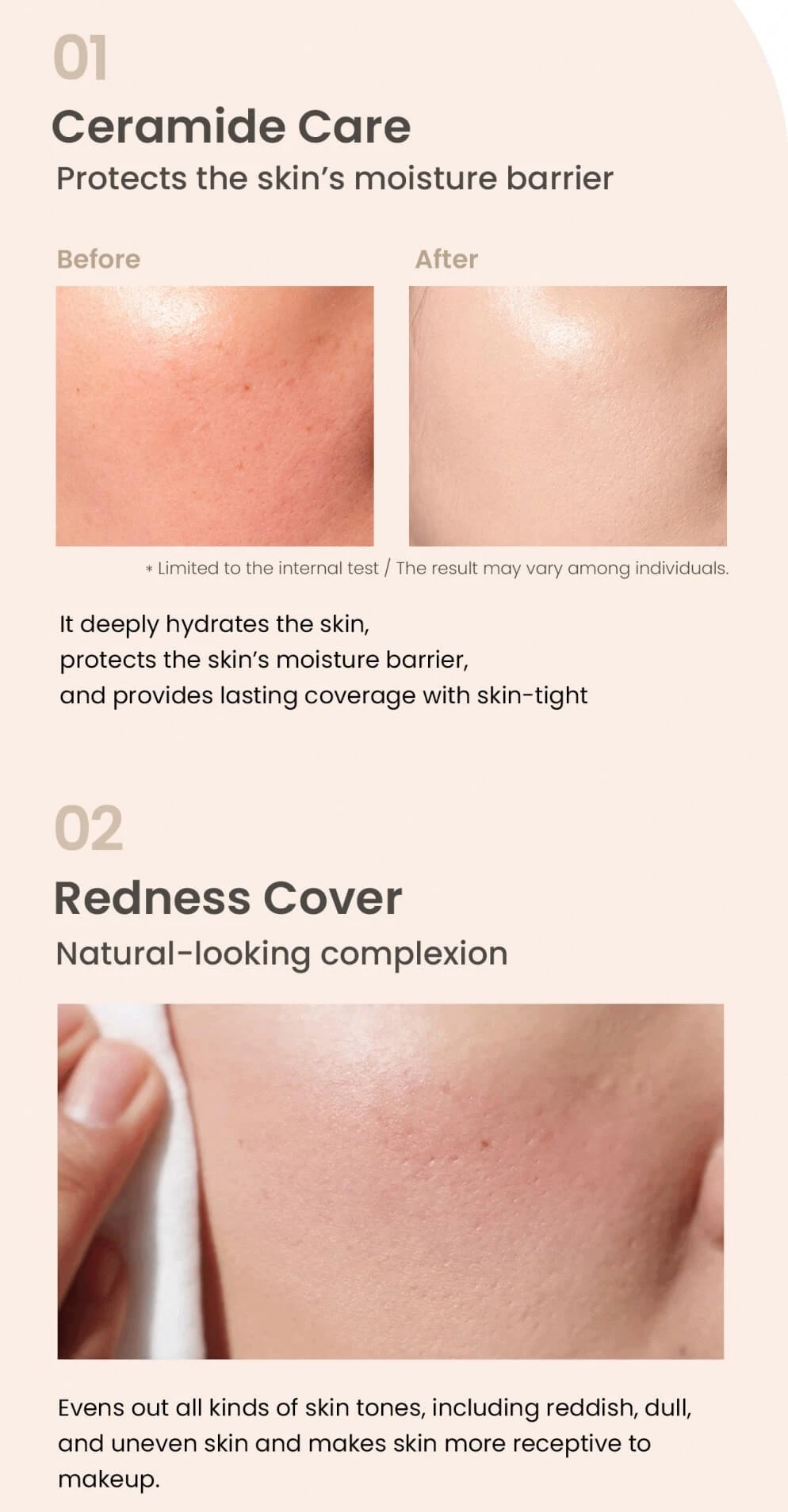 The Moringa Ceramide BB Cream covers redness and improves skin elasticity while