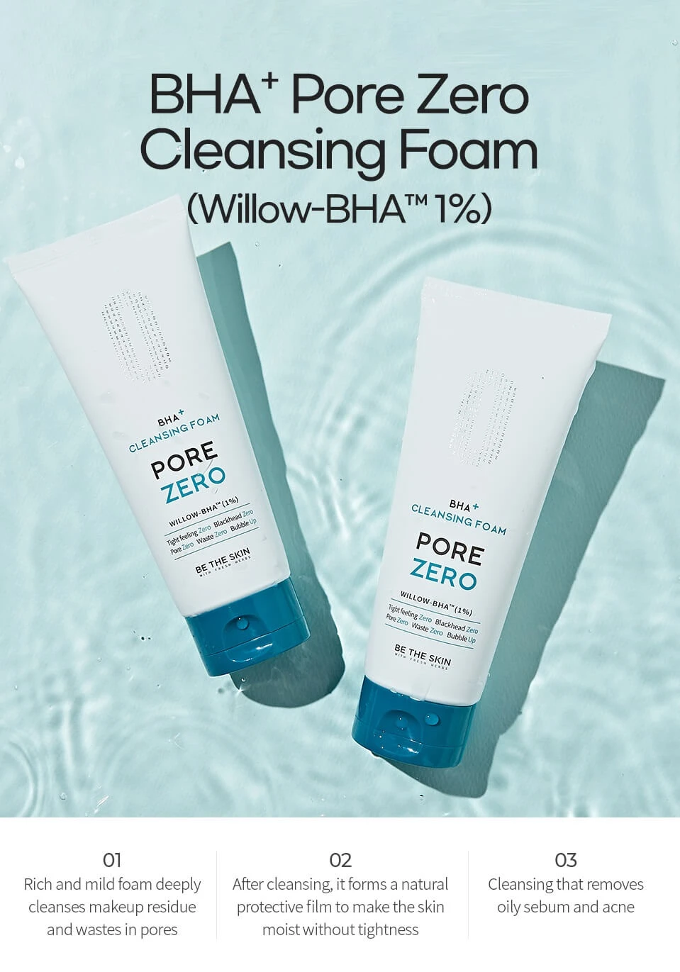 Introducing Pore Zero BHA+ Cleansing Foam by BE THE SKIN – a powerful and gentle cleanser that deep-cleanses pores, removing makeup residues and blackheads while protecting the skin barrier.