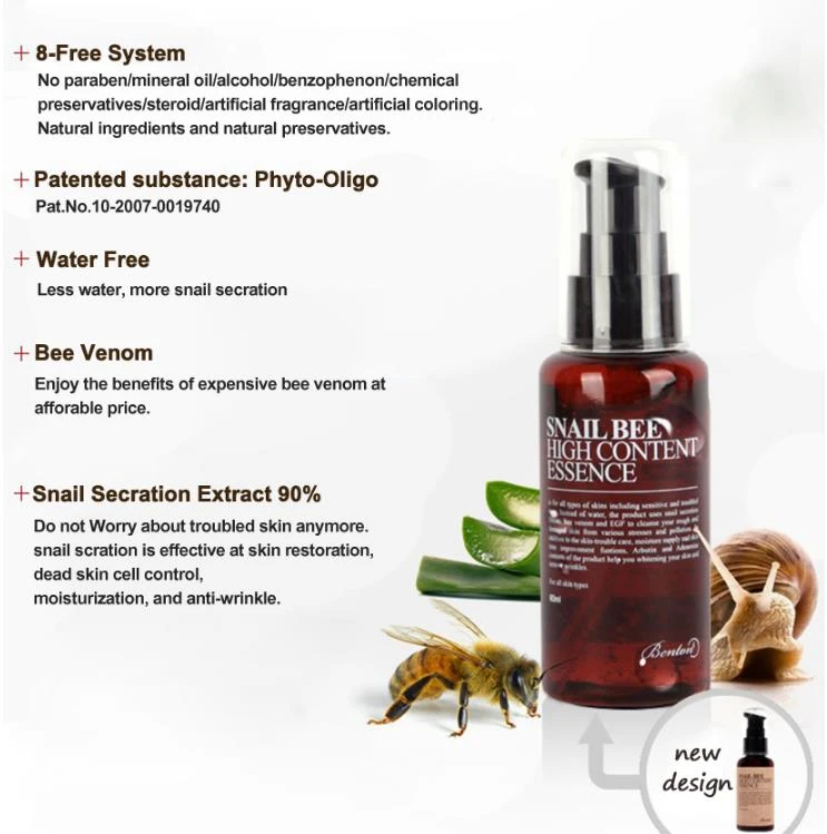 Benton’s Snail Bee High Content Essence contains a high concentration of Snail Secretion Filtrate, as well as bee venom and aloe. It also contains willow bark extract, a natural exfoliator to remove dead skin cells and aid the skin’s regeneration process.
