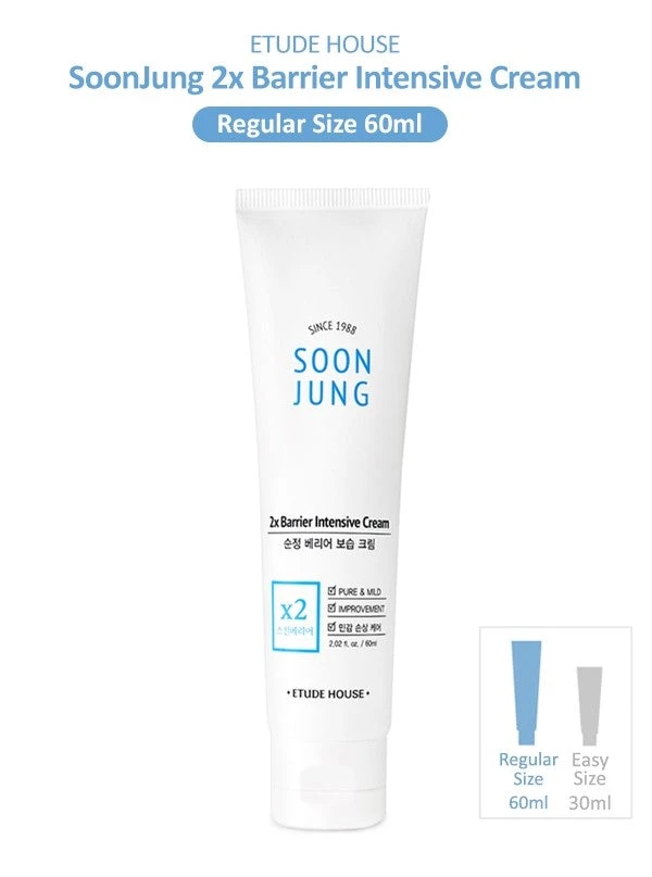 *Important* – This product contains multiple packaging type for the same product. As such, the new packaging type will be sent once the older packaging type is out of stock. Soon Jung 2x Barrier Intensive Cream 60mL is actually the NAME of the product. It is not to signify that you get two of this product as a set per the price listed.