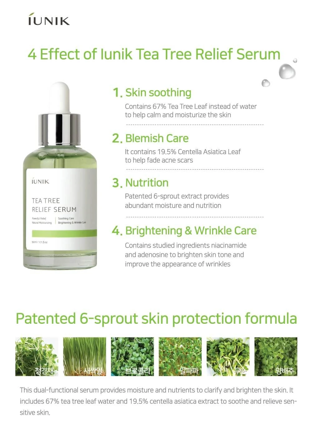 Restore your smooth and supple skin with the power of this k-beauty iUNIK Tea Tree Relief Serum.